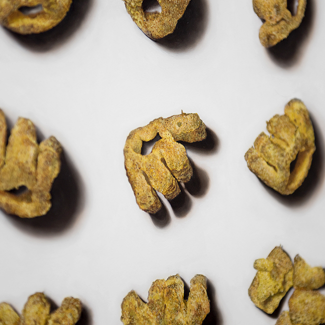 Each painting is of a full packet of crisps painted onto a pure white background. I enjoy painting food and I feel the work is a celebration of the everyday. Something we are all familiar with but really don't even notice. I hope that these pieces also raises questions about the nature of representation and reality, as the photorealistic style blurs the line between the actual and the depicted. |