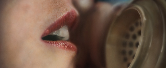 Bittersweet Strawberry shows a woman’s mouth speaking into a telephone receiver. Because it is a 1970s phone, the viewer begins to place a narrative on the work, to contextualise it; the viewer is left to decode the title, which refers in part to the strawberry lipstick; does it signify a negative or a positive conversation is going on? It’s human nature to wish to interpret such emphatic highlighting of certain objects and images.