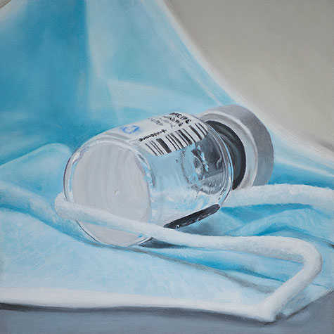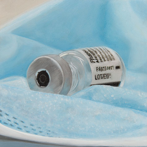 Tomorrow Belongs To Me #1, #2, 2021 Pfizer-BioNTech Covid-19 Vaccine Vial Oil Paint on Aluminium, 127 x 127mm, Private Collection
